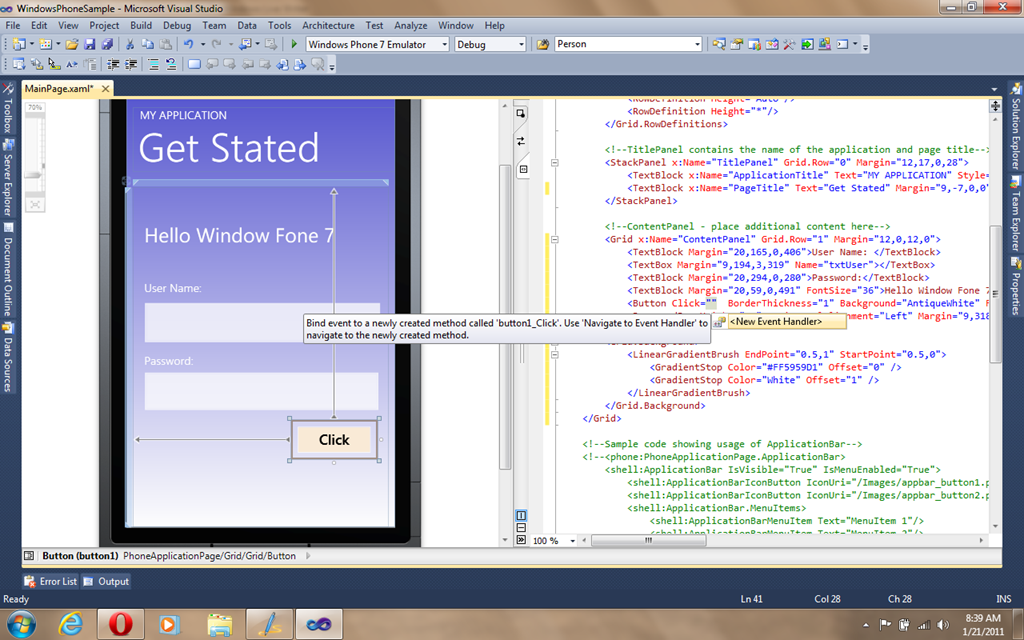 40: <TextBlock Margin="20,59,0,491" FontSize="36">Hello Window Fone 7</TextBlock>