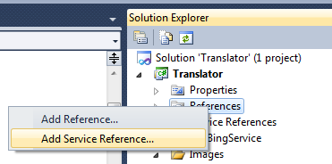 – Sau khi add Service vào thì các bạn sẽ thấy có một thư mục mới của hệ thống sinh ra là Service References và trong đó có BingService như hình phía dưới :