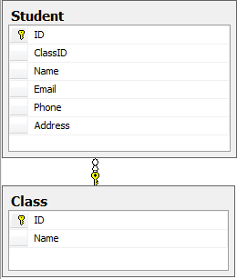 – Bước một mình sẽ tạo một cơ sở dữ liệu đơn giản gồm 2 bảng là Student và Class, với Diagram như sau