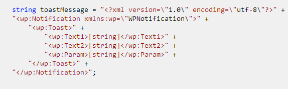 Cơ bản là phía Service sẽ gửi một Request đính kèm chuổi Xml cú pháp của Toast lên Microsoft Notification Service, sau đó Microsoft Notification Service sẽ Push về phía Phone.