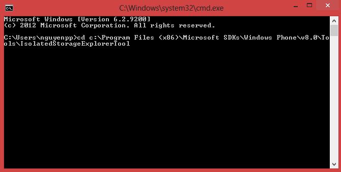 cd c:\Program Files (x86)\Microsoft SDKs\Windows Phone\v8.0\Tools\IsolatedStorageExplorerTool