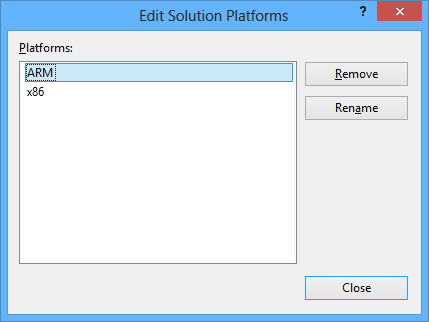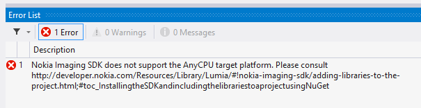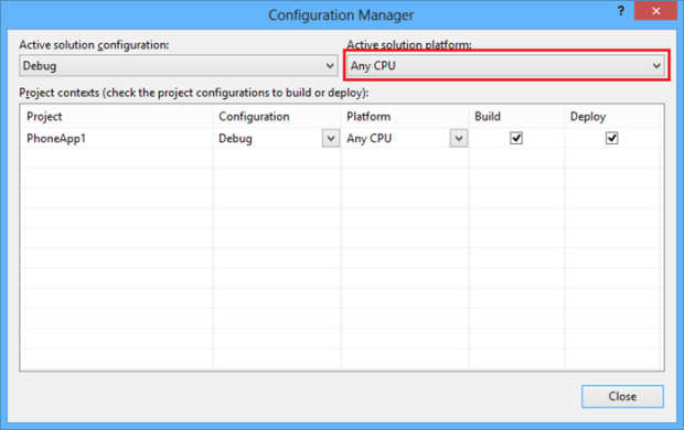 Hệ thống báo lỗi này vì Nokia Imagine Sdk chỉ hộ trợ built CPU dạng ARM nên chúng ta phải vào Configuration Manager để chỉnh lại chế độ built cho project:
